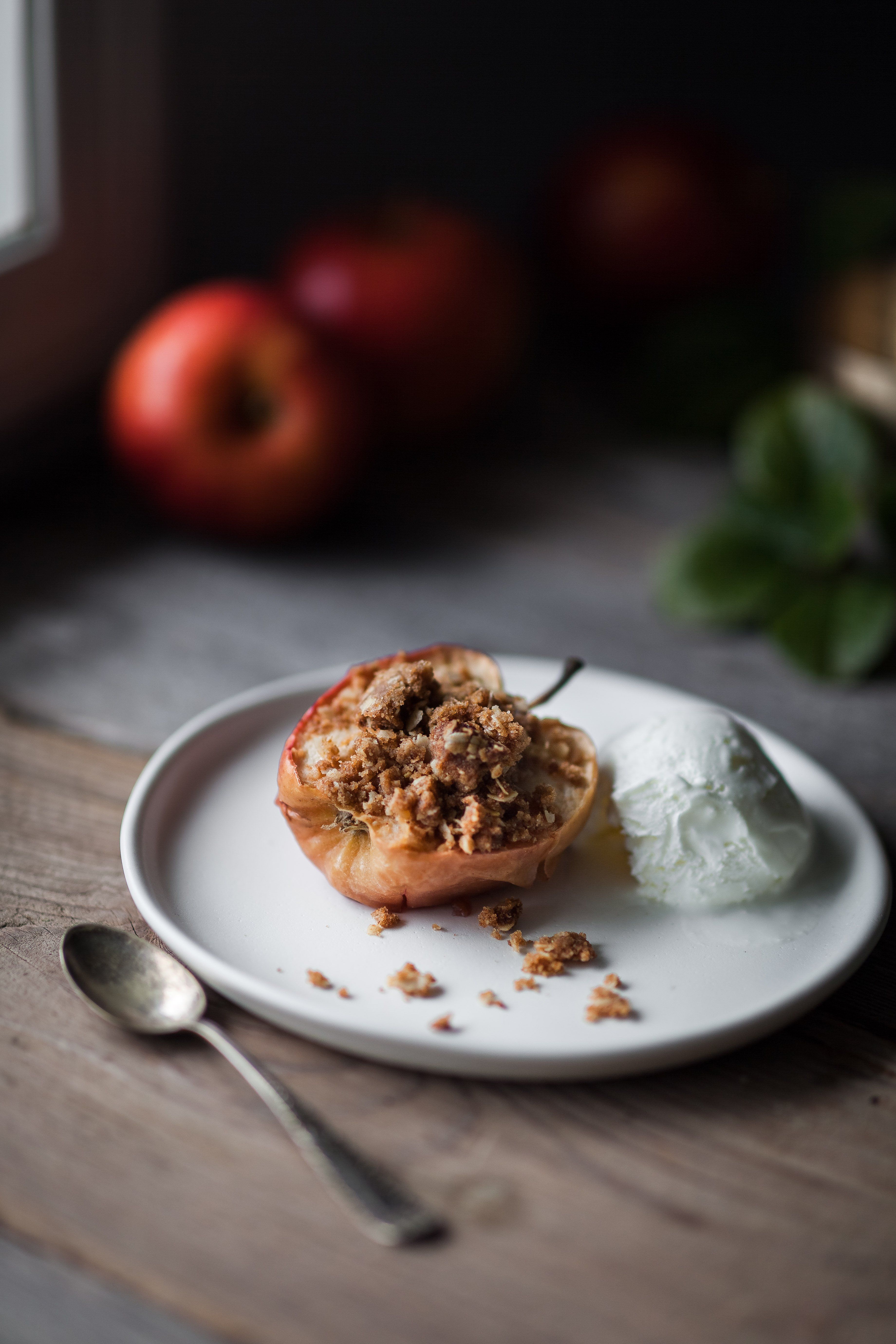 Resepti | Paistetut omenat valkoisen jäätelön kera