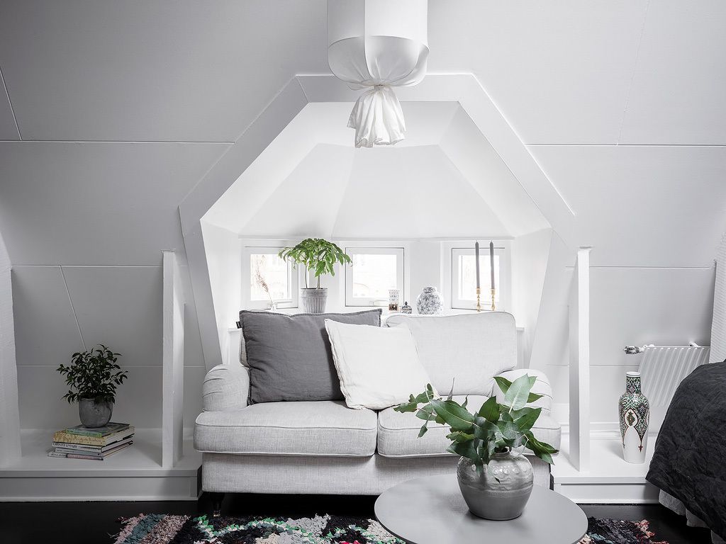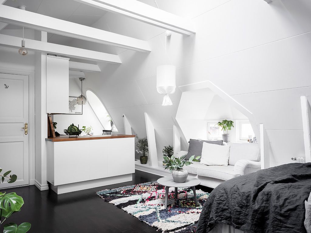 Astuessasi avoimen, tilavan ja valoisan pienen kattohuoneiston maailmaan tunnet heti, kuinka jokainen elementti ja yksityiskohta on harkiten sijoitettu luomaan yhtenäinen ja harmoninen elinympäristö, jossa on vahva persoonallisuus. Tämä asunto on esimerkki siitä, kuinka rajatusta tilasta voidaan tehdä monikäyttöinen ja tyylikäs asunto, jossa jokainen nurkka ja jokainen elementti on huolellisesti harkittu.