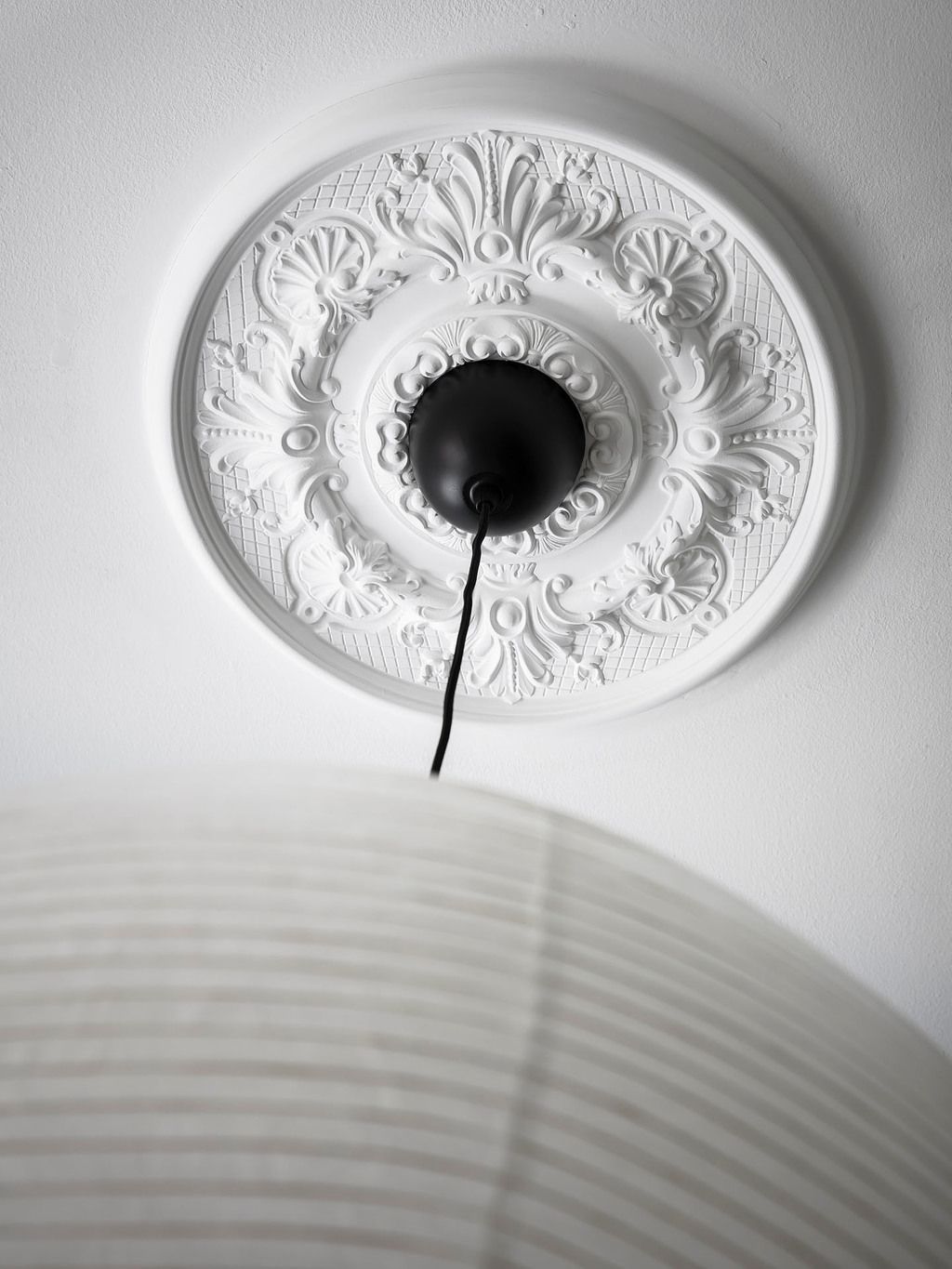 Kauniilla vihreän ja valkoisen väriyhdistelmällä koristeltu korkeakattoinen olohuone (3,10m) on säilyttänyt monia alkuperäisiä yksityiskohtia, vuosisadan vaihteen viehätystä talon alkuvuosista. Huoneessa on säilytetty alkuperäiset peiliholvit katossa, kaunis kattoruusuke, korkeat jalkalistat ja kunnostettu alkuperäinen puulattia, joka tarjoaa sekä visuaalista juhlaa että kodikasta tunnelmaa. Olohuoneessa on kaksi korkeaa, tilavaa, alkuperäistä ikkunaa, joissa on mukavat syvät ikkunarakenteet, jotka päästävät päivän aikana riittävästi luonnonvaloa valaisemaan koko olohuoneen. Illan hämärtyessä olohuonetta valaisee näyttävä kattovalaisin (&tradition Formakami JH5) sohvapöydän yläpuolella.